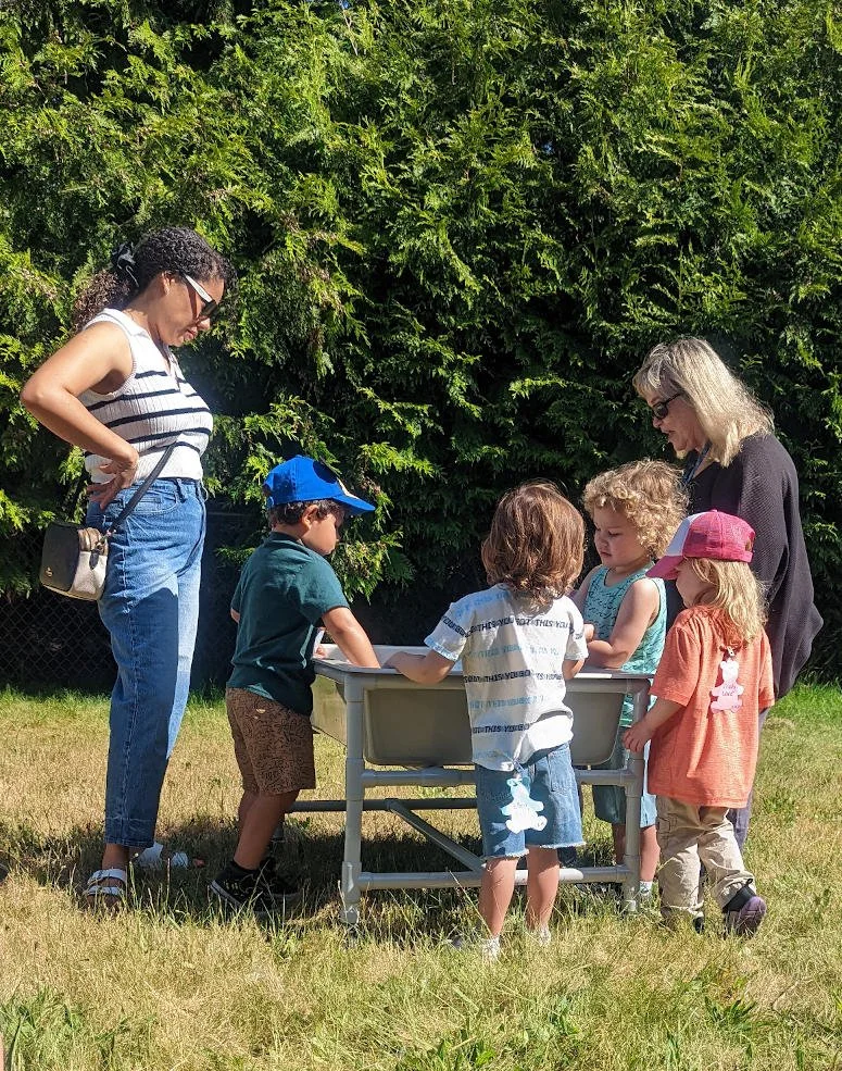 Through play the young children begin to develop a lifelong love of learning. Playful exploration accompanied by some guidance from the teacher and parents promotes the development of social skills, emotional intelligence, scientific inquiry, literacy, mathematics, a variety of sensory experiences, dramatic play, drawing and writing skills, creative expression and large and small motor skills. The majority of the class time is devoted to choice play.